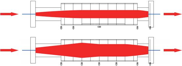 ● 集體調(diào)幅方式:進(jìn)布端設(shè)一或二個(gè)單獨(dú)電機(jī)調(diào)幅,其余采用通軸調(diào)幅